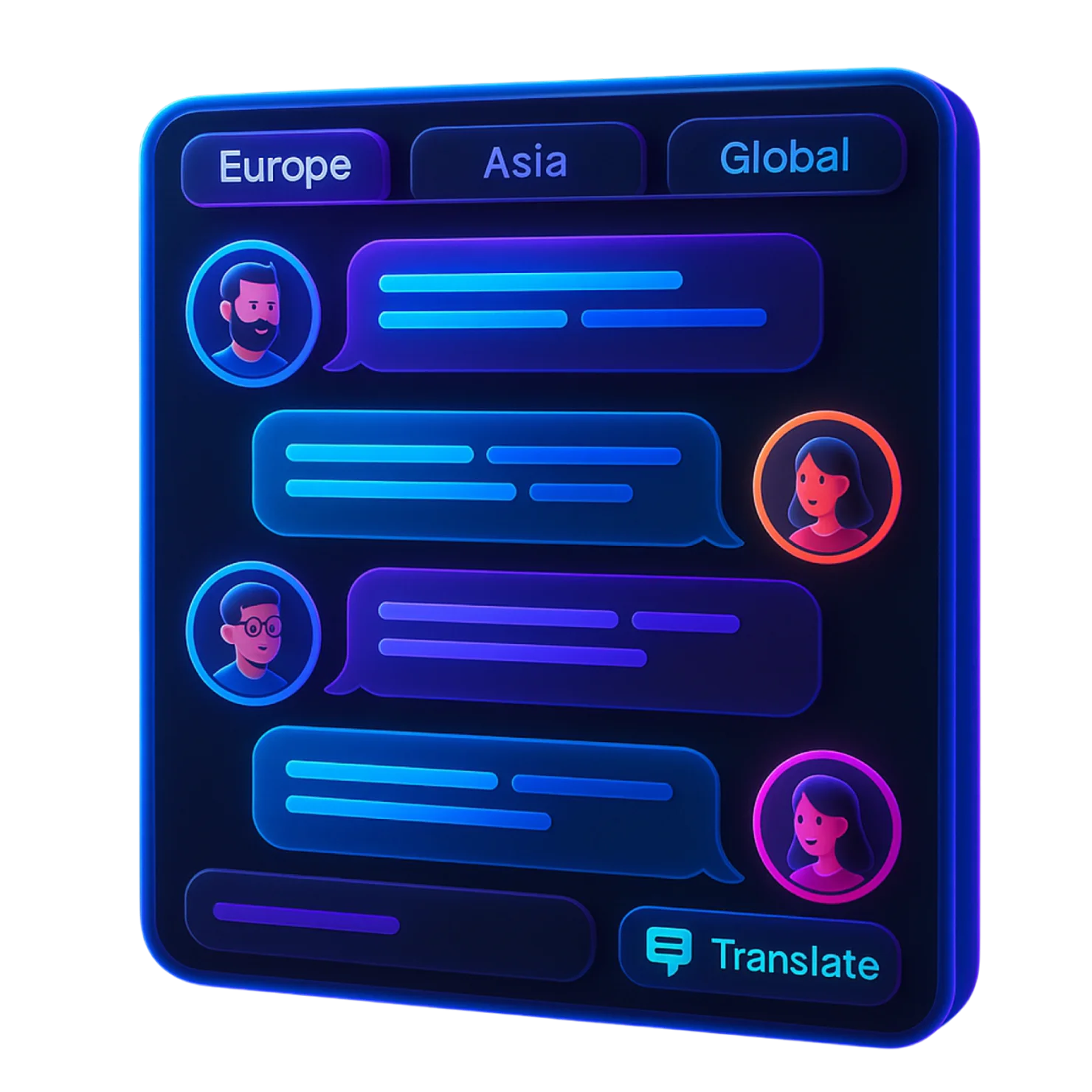 Встроенный мессенджер в браузере позволяет клиентам общаться друг с другом в общем чате (разделённом по регионам), в команде или лично. Подключайтесь к европейскому, азиатскому или любому другому региону – и ведите беседу «со своими» без языковых барьеров. Интеграция с нейросетевыми переводчиками позволяет переводить сообщения прямо в интерфейсе.